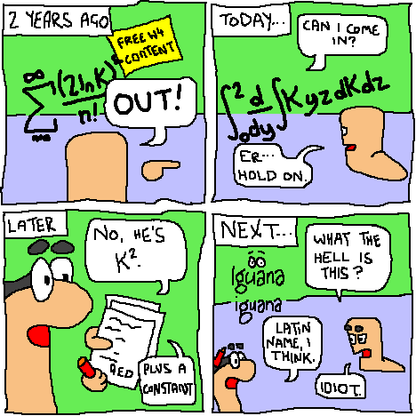 This was a bit of nonsense I put up to tease Paul. It ran for less than three strips, after which it had to be ended to make room for a maths joke. Er, another maths joke, that is.