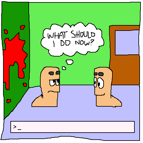 For some awful reason, four years after the first of these comics, the cabal of morons in Fan Art, inspired by Zero who at least can draw and spell and think stuff through and breathe with his mouth shut, started doing 'choose-your-own-adventure' threads where they'd draw a picture, eighty people would suggest an action, they'd draw another picture of something that they hadn't thought out properly and then they'd lose interest and wander off. Not fun times.
