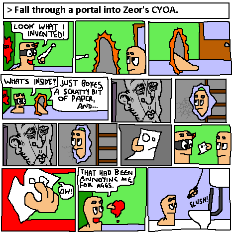 At one point, one of the morons' create-your-own-adventure threads had the audacity to burst in to Zero's far better one. So when I was asked to burst in there also, I did so purely to remove him.